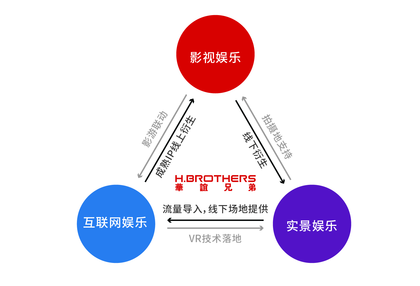 “大娱乐生态圈”战略是基于和记[怡情]娱乐唯一官方网站“影视娱乐”、“品牌授权与实景娱乐”、“互联网娱乐”三大业务板块梳理的平台化运营逻辑,通过搭建一个联动平台,